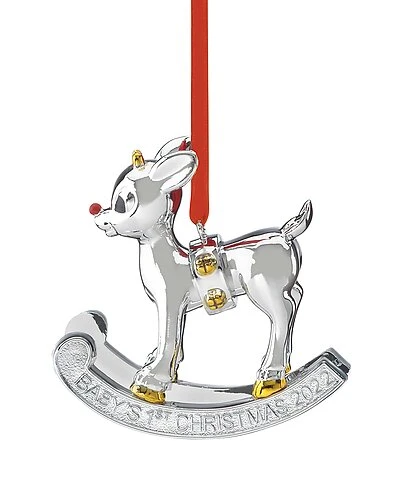 - Design details: introduce them to Rudolph early. The little bundle of joy will love this joyful reindeer ornament with a bright red nose and golden accents.