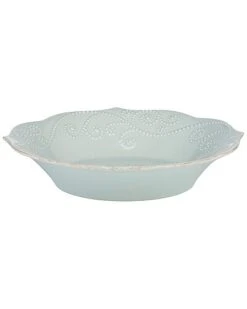 - A delicate tea-stained rim with soft scalloping is the focal point of this durable ice blue ceramic stoneware pasta serving bowl, also featuring gentle beads that add a subtle texture. This item is microwave and dishwasher-safe, for added convenience.